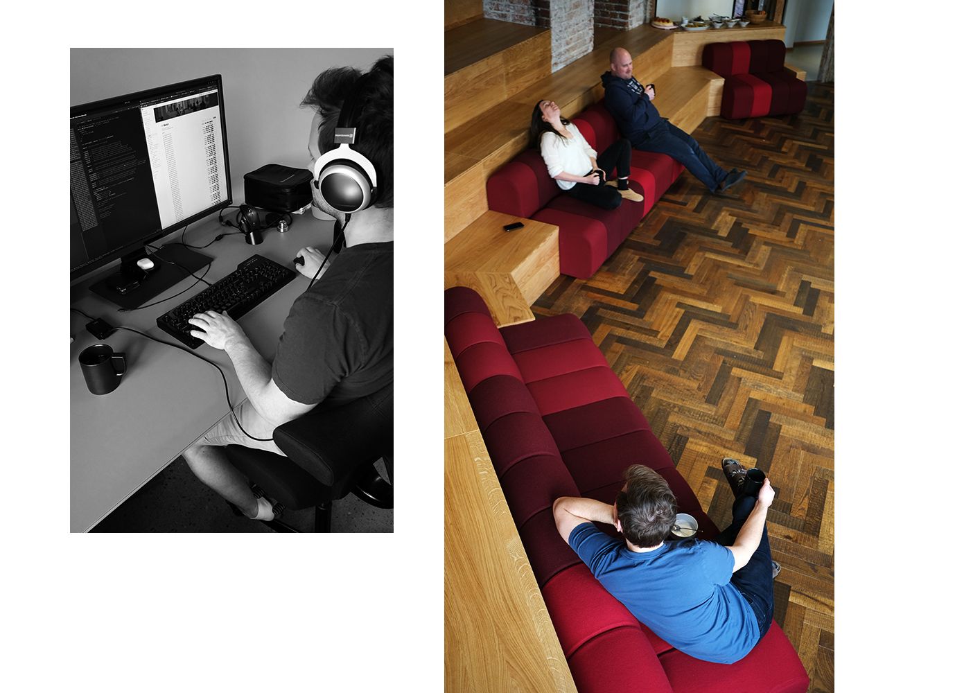 Ok – jeg ser det for meg... Ville du at jeg skulle svare også? Jeg liker godt å jobbe med brukergrensesnittet – altså det som brukerne våre ser i nettleseren når de går til fiken.no. Mens andre jobber mest med det som ikke synes. Under panseret, om du vil.
